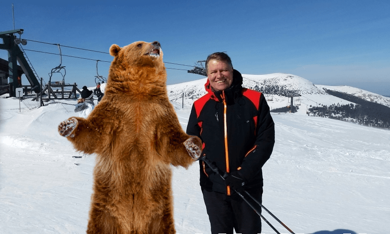 Muncește chiar și în vacanțe! Președintele Iohannis a avut o întâlnire la cel mai înalt nivel pe pârtia de la Păltiniș cu omologul său, președintele tuturor urșilor din România. Cei doi au mormăit timp de 4 ore, deși întâlnirea era programată să dureze doar 30 de minute.