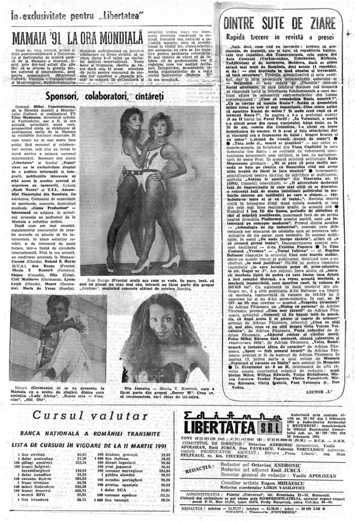 Ziarul Libertatea din 16 martie 1991 pag. a 5-a ▼
