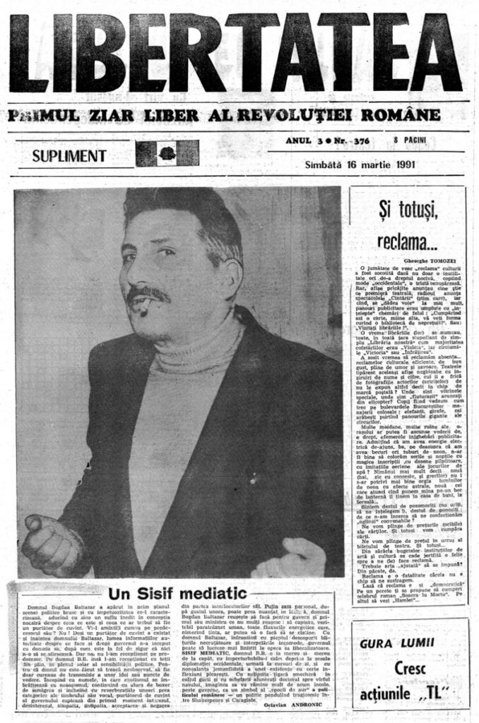 Ziarul Libertatea din 16 martie 1991 pag. a 8-a ▼ Click pe imagine pentru mărire