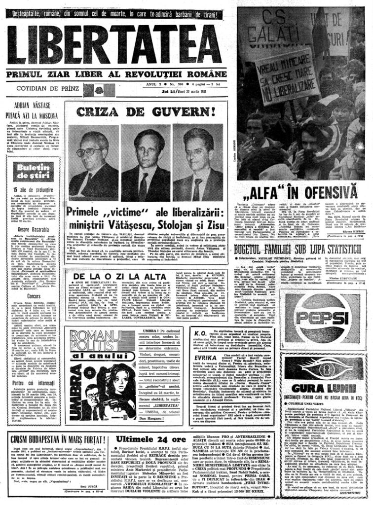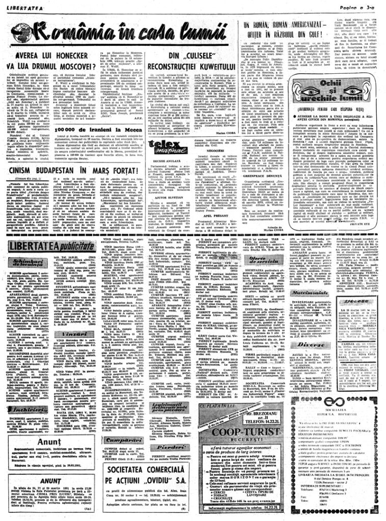 Ziarul Libertatea din 21 martie 1991 pag. a 3-a ▼ Click pe imagine pentru mărire
