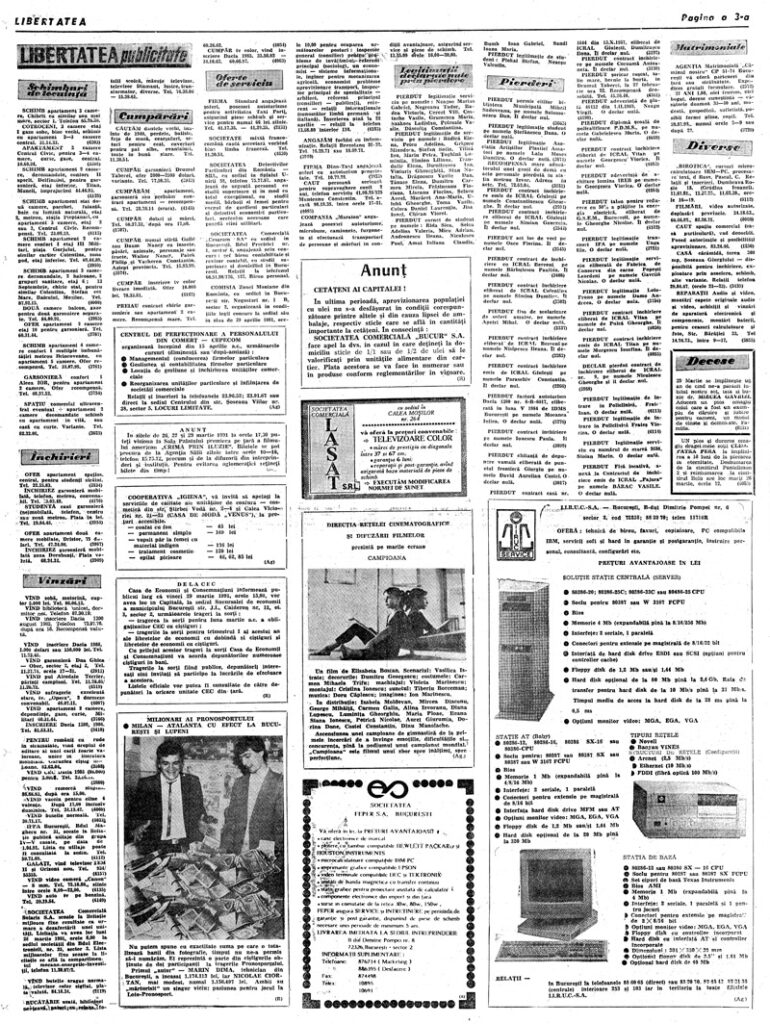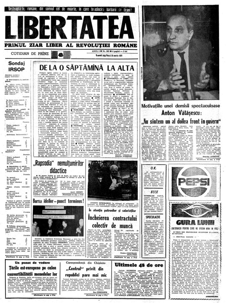 Ziarul Libertatea din 25 martie 1991 pag. a 3-a ▼ Click pe imagine pentru mărire