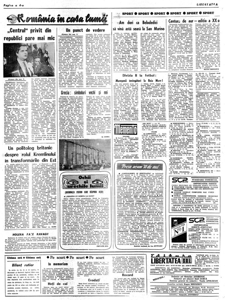 Ziarul Libertatea din 25 martie 1991 pag. a 4-a ▼ Click pe imagine pentru mărire