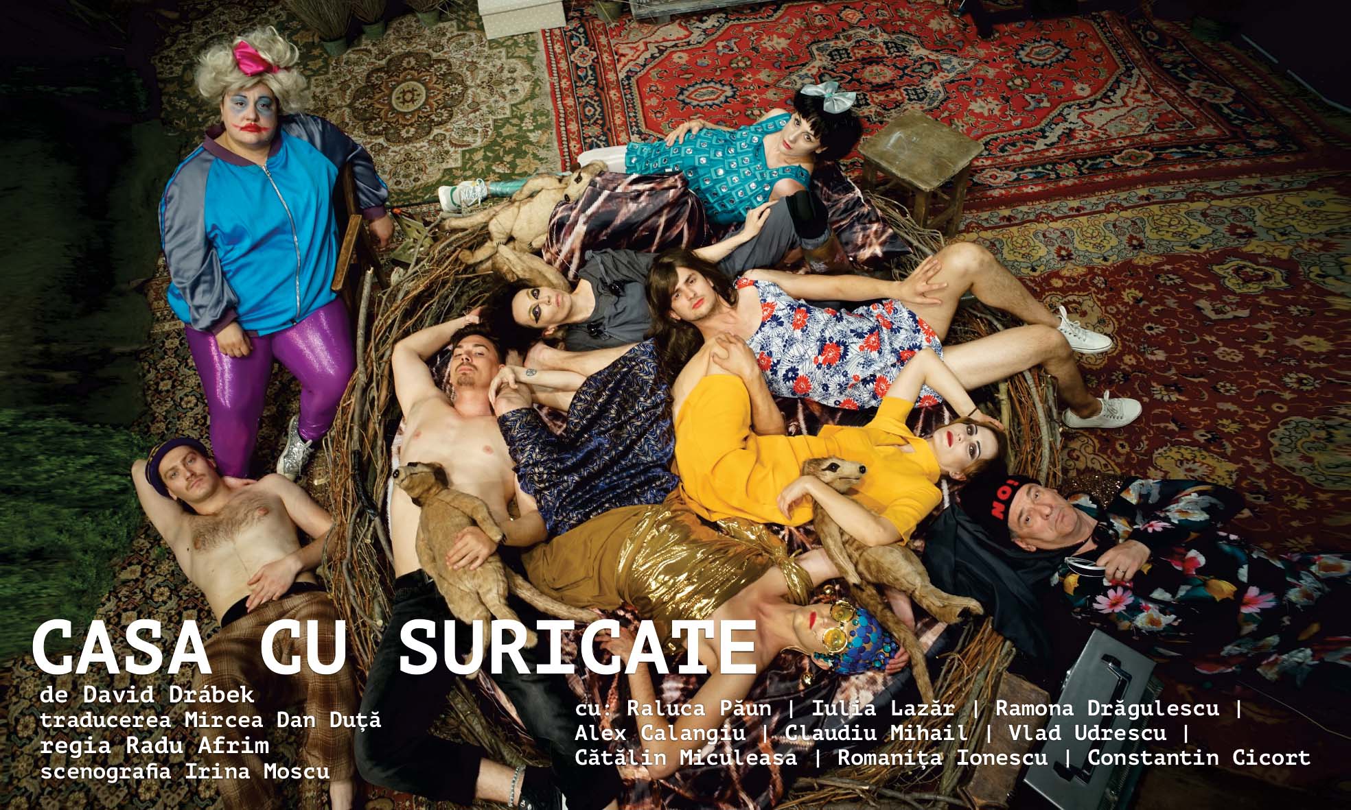 Casa cu suricate de David Drábek, regia Radu Afrim. Producția a avut premiera în stagiunea 2018-2019 și îi are în distribuție pe Raluca Păun, Romanița Ionescu, Iulia Lazăr, Ramona Drăgulescu, Constantin Cicort, Alex Calangiu, Claudiu Mihail și Vlad Udrescu. Spectacolul va fi difuzat de la ora 22:00.