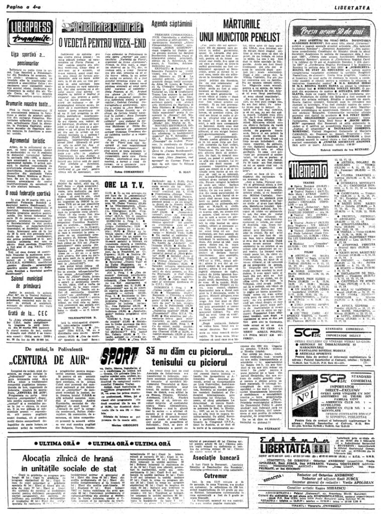 Ziarul Libertatea din 2 aprilie 1991 pag. a 4-a ▼ Click pe imagine pentru mărire
