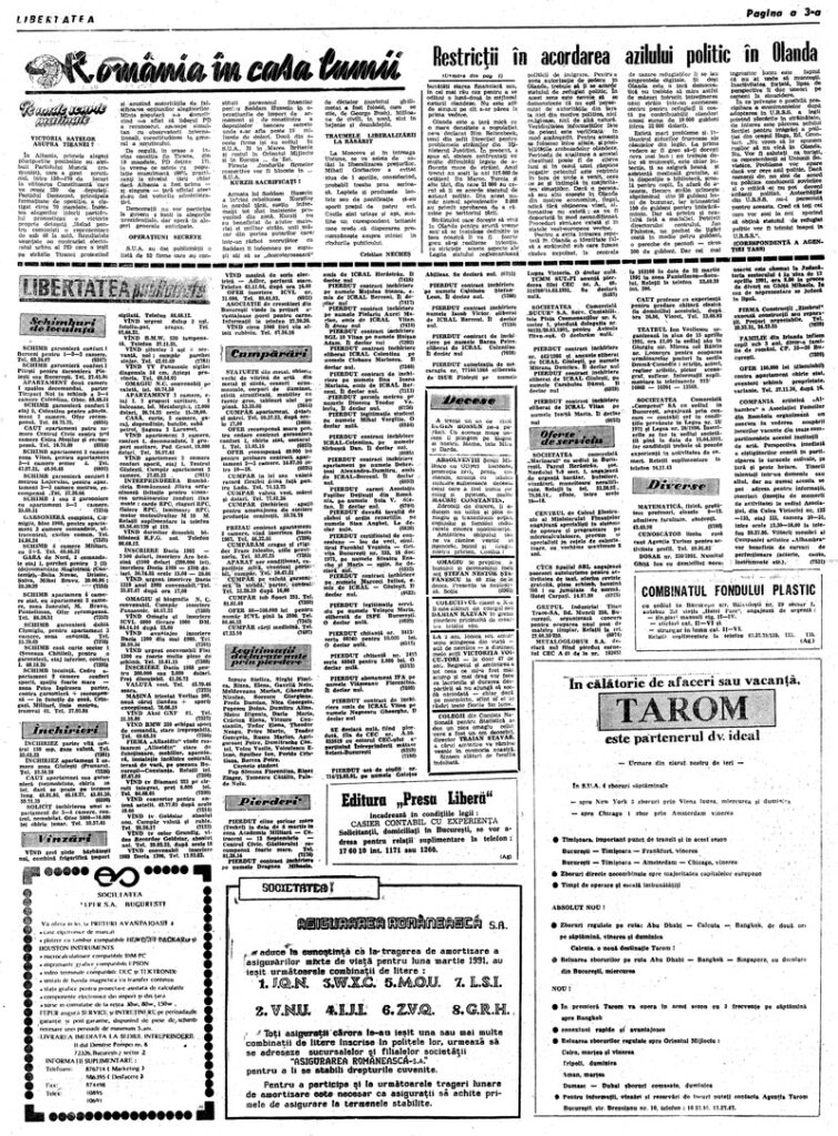Ziarul Libertatea din 2 aprilie 1991 pag. a 3-a ▼ Click pe imagine pentru mărire