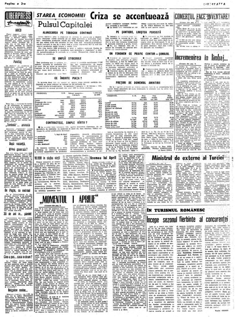 Ziarul Libertatea din 2 aprilie 1991 pag. a 2-a ▼ Click pe imagine pentru mărire