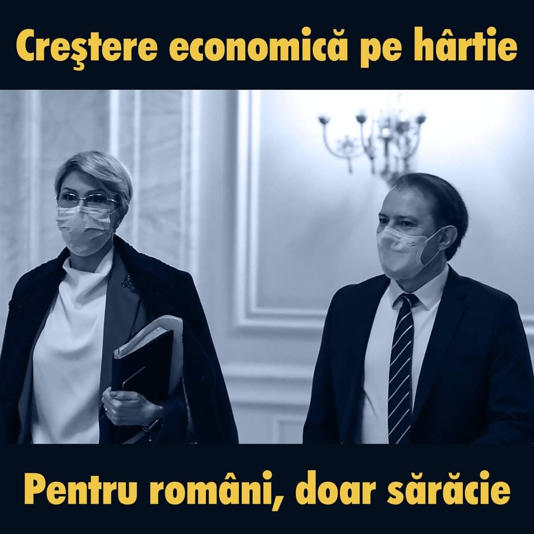 „Creșterea economică prognozată de FMI este doar pe hârtie și pentru camarila de dreapta! Pentru români este doar sărăcie!!! Prețurile la alimente și utilități au explodat, euro a ajuns la 5 lei, iar puterea de cumpărare a scăzut dramatic.