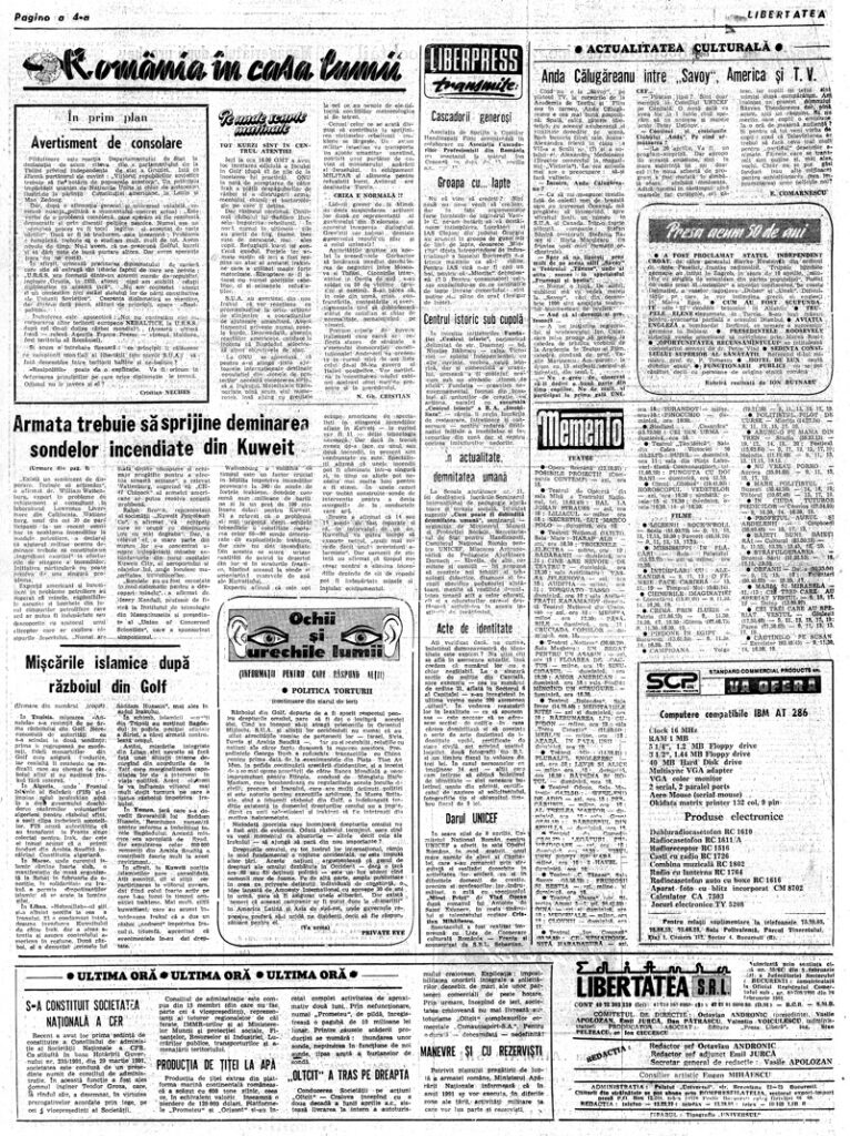 Ziarul Libertatea din 12 aprilie 1991, pag. a 4-a ▼ Click pe imagine pentru mărire