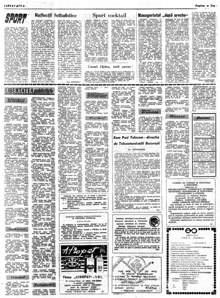 Ziarul Libertatea din 12 aprilie 1991, pag. a 3-a ▼ Click pe imagine pentru mărire