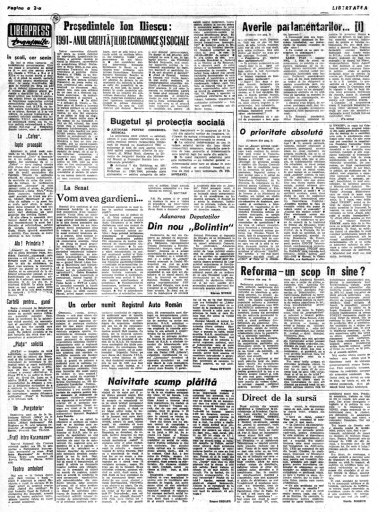 Ziarul Libertatea din 12 aprilie 1991, pag. a 2-a ▼ Click pe imagine pentru mărire