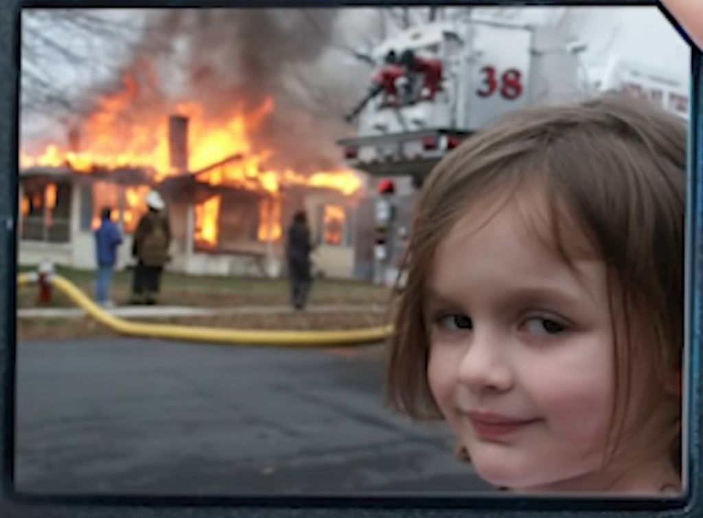 La vârsta de cinci ani, Zoe Roth a fost fotografiată de tatăl ei, în fața unei case în flăcări din Mebane, Carolina de Nord, în timp ce schița o grimasă bizară. Imaginea a devenit unul din cele mai cunoscute meme-uri de pe internet!