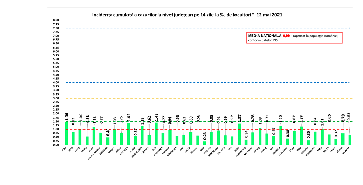 Grupul de Comunicare Strategică (GCS) a anunțat miercuri, 12 mai 2021, că au fost diagnosticate 930 de cazuri noi COVID-19 de cazuri noi de COVID-19, fiind prelucrate 24.307 teste RT-PCR și 10.236 de teste rapide antigenice. 874 de persoane sunt internate la ATI, o ușoară scădere față de raportarea de ieri. S-au înregistrat 98 de decese
