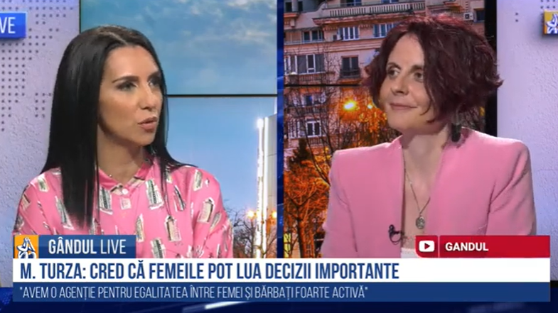 Mădălina Turza, consilier de stat în cadrul Cancelariei premierului, a vorbit în cadrul ediției GÂNDUL LIVE de miercuri, despre prezența femeilor în managementul mediu și la nivel înalt în Executivul din România. Mai mult, aceasta subliniază un demers derulat de președinta Agenției Naționale a Egalității între Bărbați și Femei care își propune ca Planurile de Acțiune să fie implementate la nivelul fiecărui minister de resort.