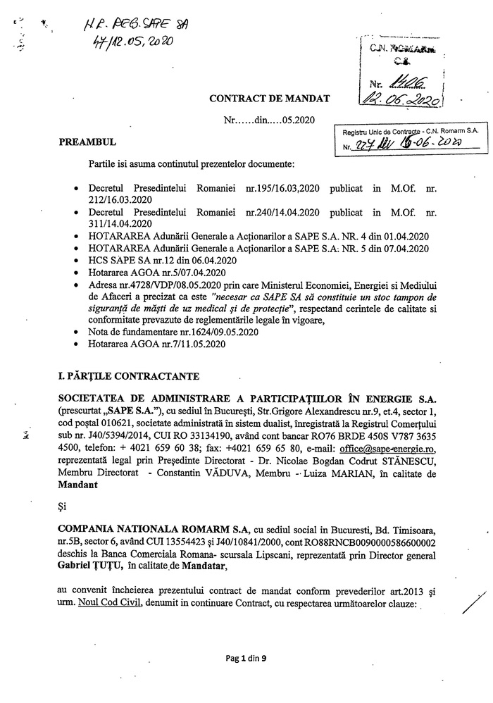 A doua zi, pe 12 mai 2020, chiar înainte să ieșim din starea de urgență, se parafează și contractul.