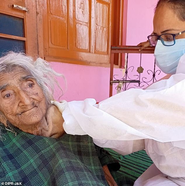 O femeie care pretinde că este cea mai în vârstă persoană din lume, la 124 de ani, a obținut prima sa doză de vaccin, în India.