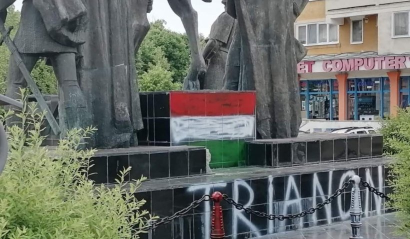 Potrivit site-ului covasnamedia, un drapel al Ungariei a fost vopsit pe soclul statuii din centrul orașului, iar alături a fost scris „Trianon 1920”.
