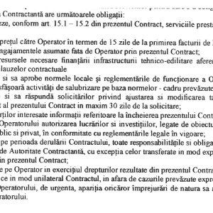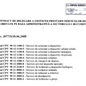 Nu în ultimul rând, compania Romprest SA notează: „Pentru o corectă informare privind obligațiile contractuale aflate în vigoare, precum și pentru a prezenta opiniei publice, în mod corect și complet, obiectul contractului de delegare a gestiunii serviciilor de salubritate pe raza teritorială a Sectorului 1, redăm în facsimil extras din contract privind obligațiile Autorității contractuale”.