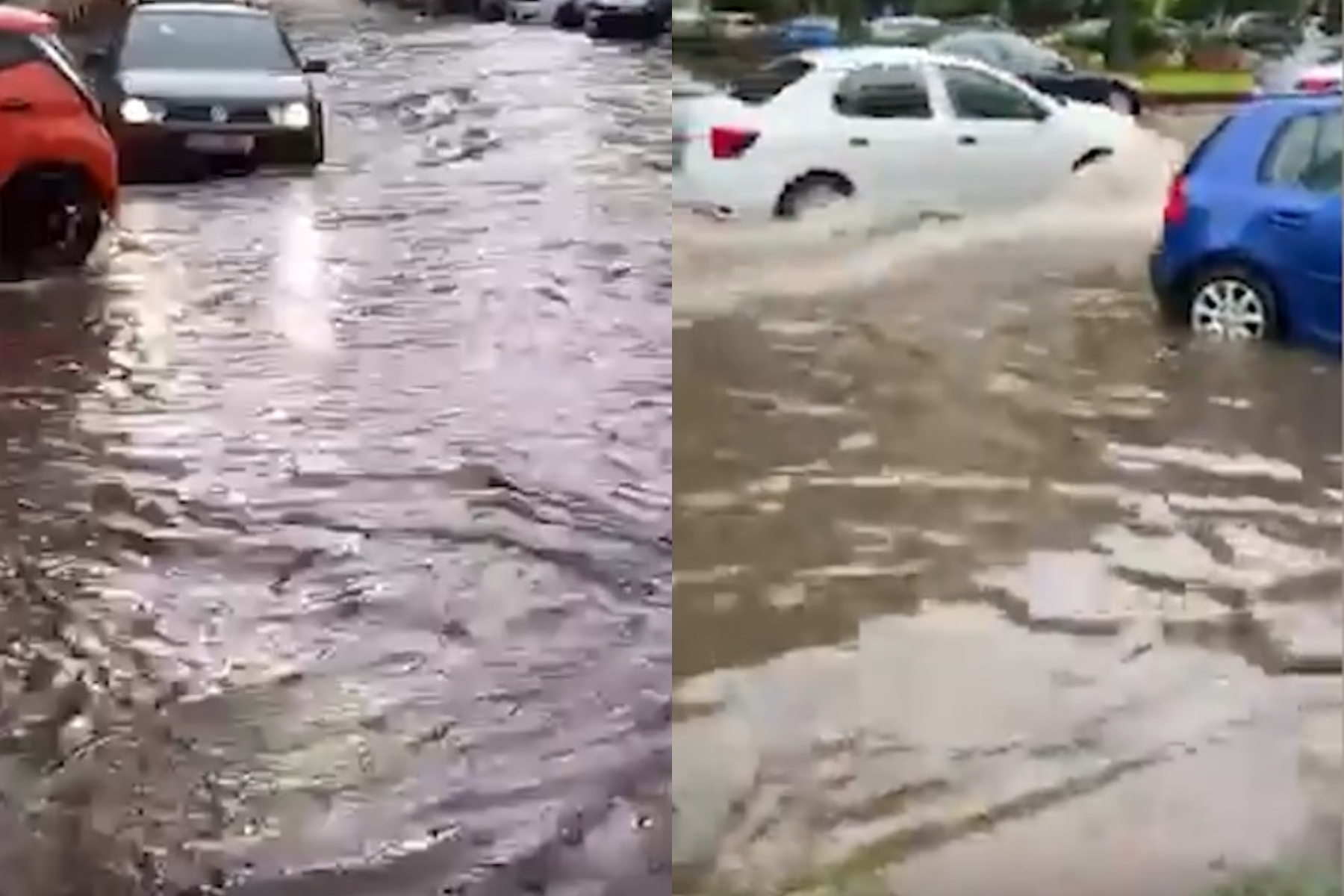 În mai multe zone din București a plouat torențial ia străzile s-au umplut de apă, în anumite zone, depășea 10 de centimetri în anumite zone.