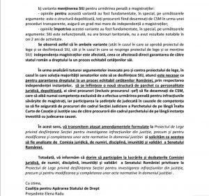 Reamintim ca, reprezentantii Coaliției pentru Apărarea Statului de Drept a transmis Senatului României amendamente la Proiectul de Lege privind desființarea Secției pentru investigarea infracțiunilor din justiție, precum şi pentru modificarea şi completarea unor acte normative în domeniul justiției, pentru situația în care soluția majorității senatorilor este să se desființeze SIIJ