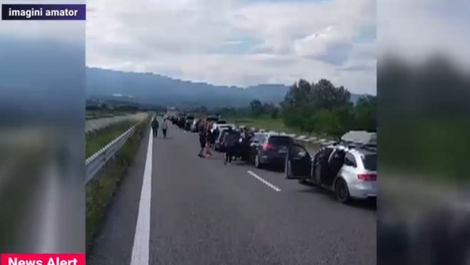 Timp de două ore, autoturismele pur și simplu au stat pe loc. Situația ne-a fost semnalată de un telespectator Digi24 care estimează că sunt sute de mașini, iar coada depășește 8 km.