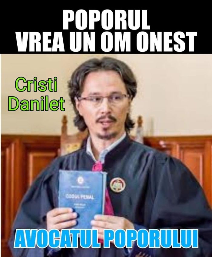 In caz ca de mult nu v-ati mai facut cruce cu doua maini si n-ati mai exclamat: „Doamne, fereste!” (dar din rarunchi, nu doar de ochii lumii), va dam noi acum o ocazie. Ia priviti ce imagine circula pe grupurile de Facebook ale fanilor penelisto-pluseristi: cica poporul #rezistent il vrea ca Avocat al Poporului pe judecatorul Vasilica-Cristi Danilet de la Tribunalul Cluj, vedeta absoluta a hashtagimii din magistratura romana, dezvaluie Lumea Justitiei. Vedeti ce idei naste neuronul singuratic al cate unora? (Irinel I.).