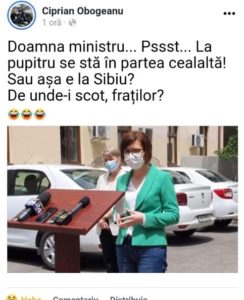 Mihăilă a fost la Sibiu, la o campanie de vaccinare în localitatea Porumbacu de Jos, și a ieșit ulterior într-o conferință de presă, unde… s-a poziționat invers la pupitru.
