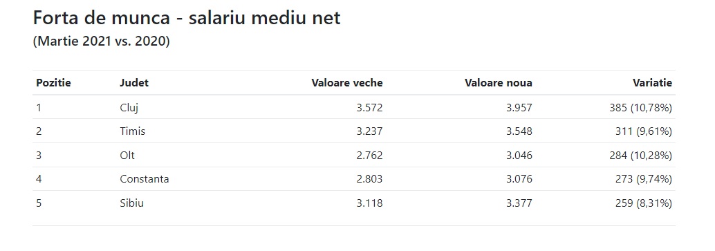 Suma de 2.122 de lei este cea mai mare în clasamentul județelor, fiind și singurul din țară care sare de pragul de 2.000 de lei.
