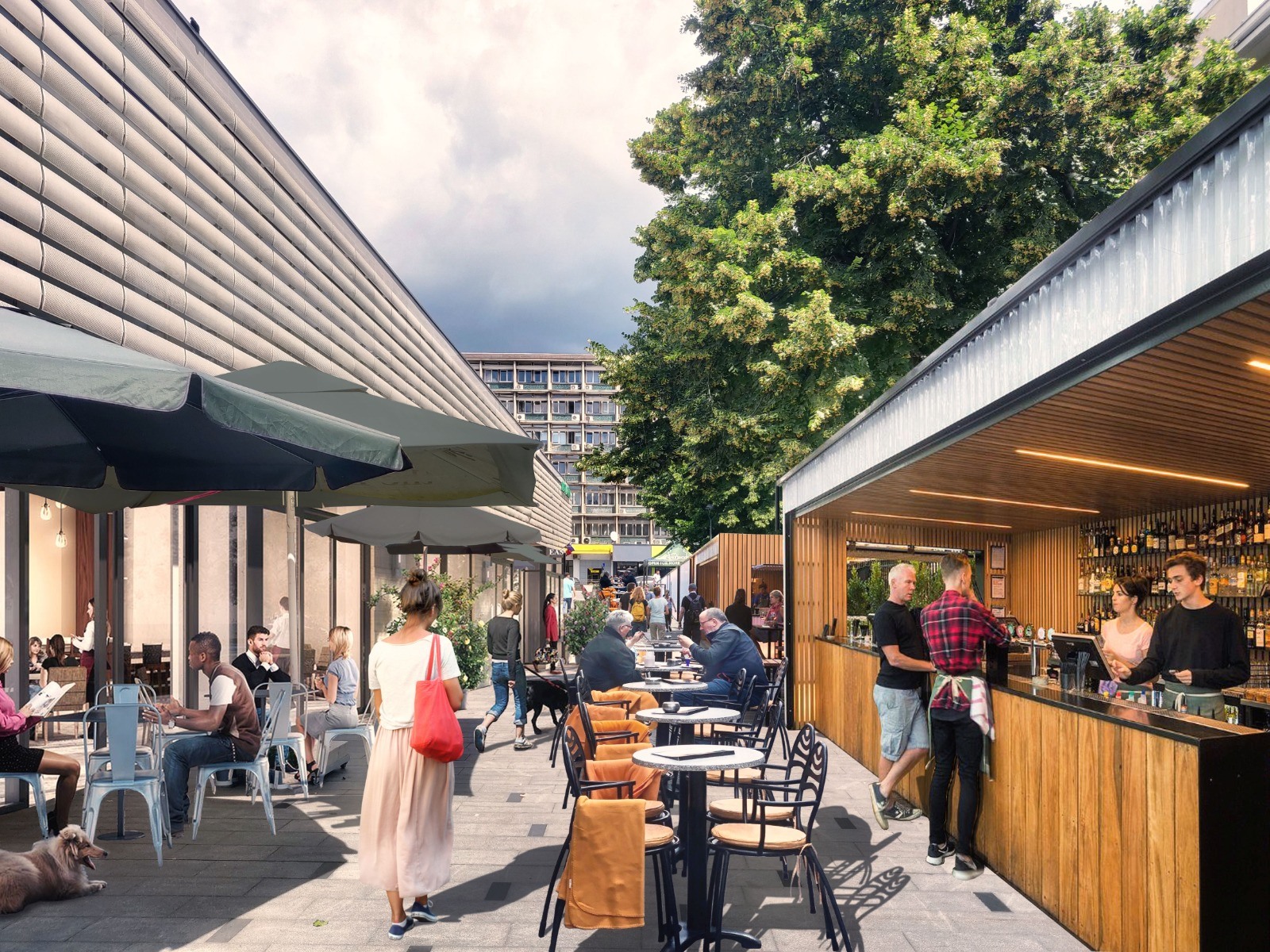 „Aici vor fi amenajate zone pentru manifestaţiile culturale şi spaţii hub/co-working demne de zona centrală a unei capitale europene, precum şi spaţii în care turiştii să poată gusta tot ce are mai bun gastronomia autohtonă, după modelul Movenpick Marche sau Vapiano. Pentru a diversifica oferta de produse gastronomice autohtone atât în formă brută, cât şi în formă preparată, pe lângă funcţiunea de piaţă tradiţională existentă în prezent la Piaţa Amzei, trebuie amenajate aici şi restaurante, cafenele şi servicii de servire mâncare