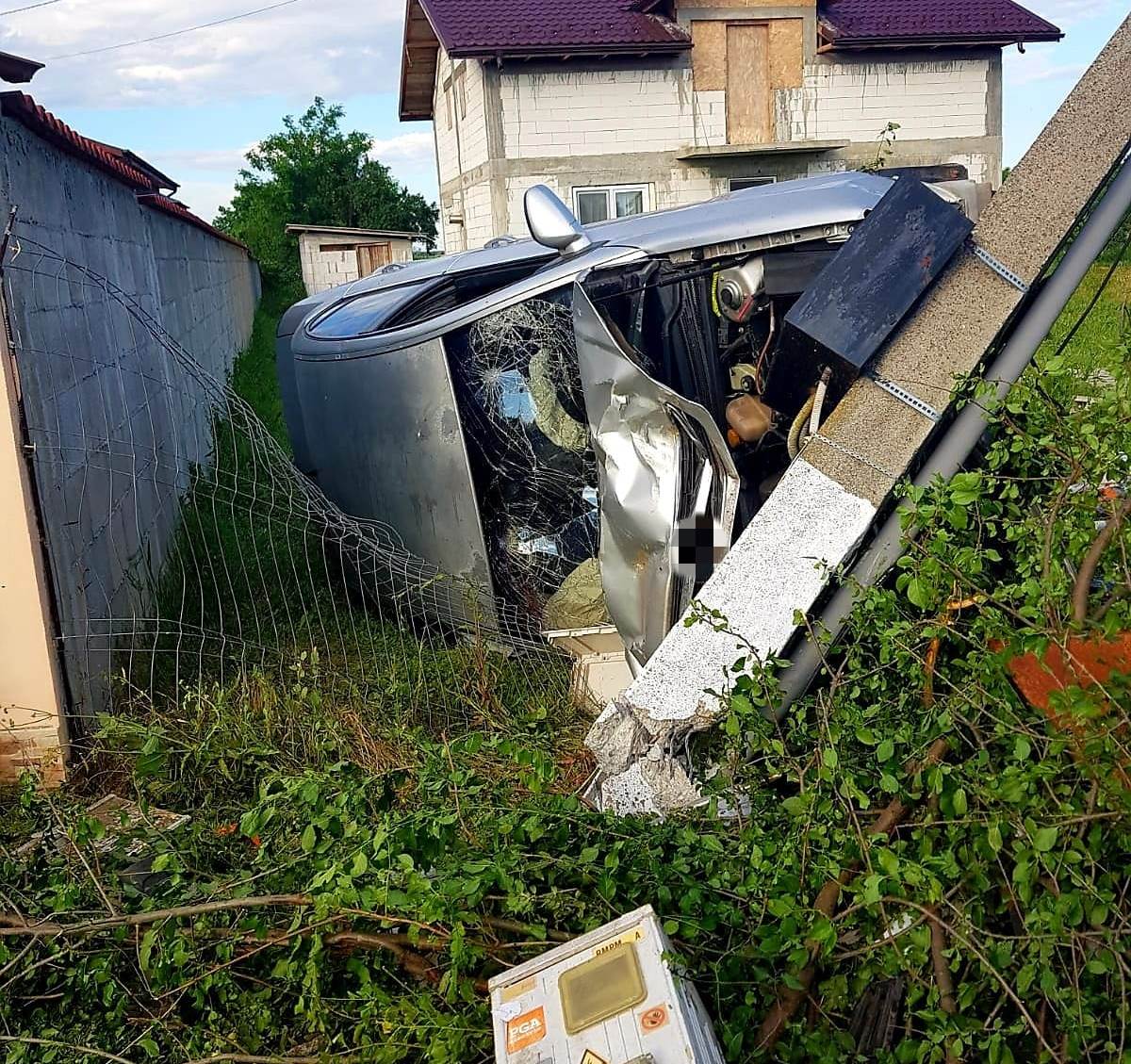 Mașina s-a răsturnat în urma impactului
