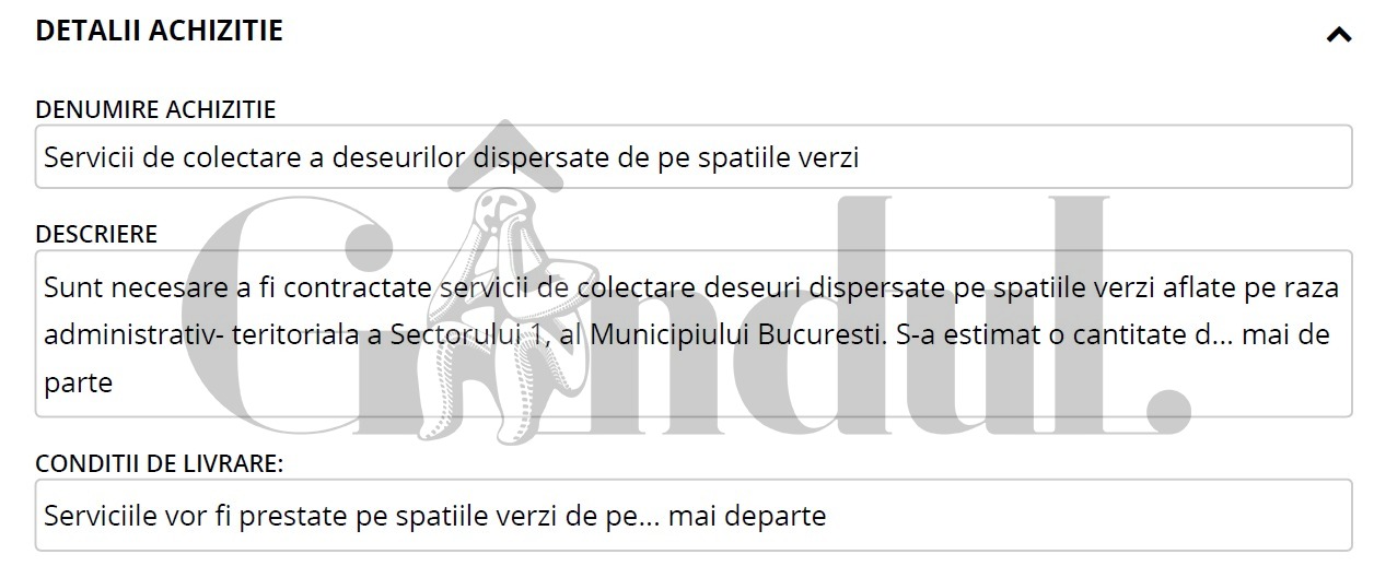În ceea ce privește contractul încheiat între Primăria Sectorului 1 și BRAI-CATA, este vorba despre ”servicii de colectare a deșeurilor dispersate pe spațiile verzi”.
