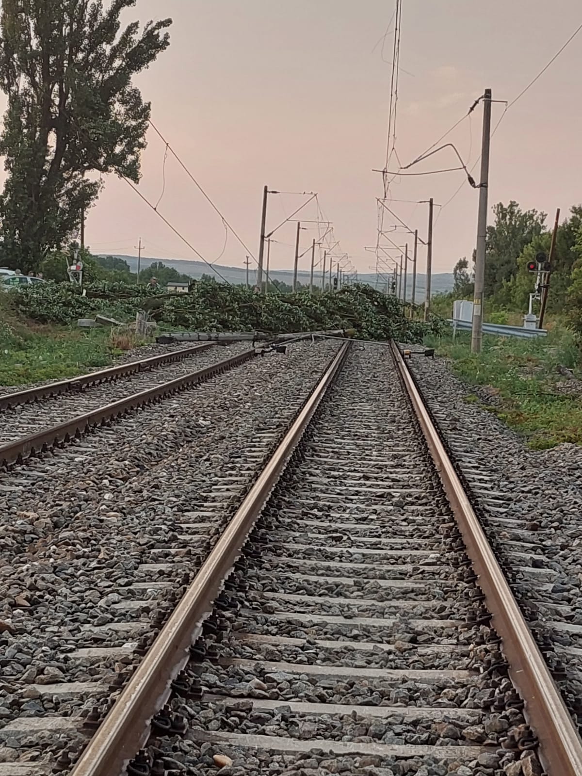 Circulația feroviară, oprită din cauza unor copaci căzuți pe calea ferată