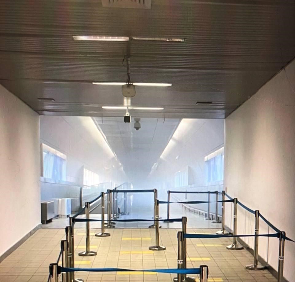 În zona apropiată camerei tehnice afectate nu se aflau pasageri dar, din motive de siguranță, o parte din pasagerii aflați în terminal au fost conduși într-o altă zonă, până la evacuarea completă a fumului, au anunțat reprezentanții aeroportului.