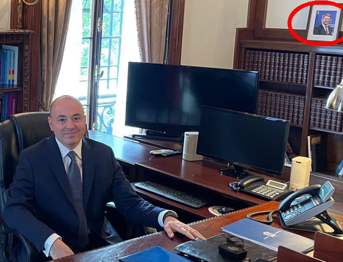 Va spuneam acum o luna si jumatate ca pe niste PNL-isti dintr-o filiala ii da afara din casa dragostea fata de tatucul lor, Klaus Iohannis, asa ca i-au atarnat tabloul in sala de sedinte (click aici pentru a citi). Acum, aceeasi dragoste o vedem din partea lui Andrei Muraru, fost consilier prezidential in perioada 2014-2021 si pe care Werner l-a trimis recent ca ambasador in SUA. Fotografia de mai jos n-am scos-o noi din maneca, ci a postat-o Muraru insusi pe Facebook joi, 29 iulie 2021. Noi doar v-o aratam si in plan general, dar si in decupaj, ca sa se vada mai bine tabloul cu Iohannis.