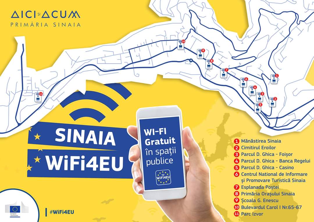 Orașul este de astăzi conectat la rețeaua europeană de internet – 11 hotspot-uri – puncte de acces la internet prin WiFi – pe care sinăienii și turiștii le pot folosi #gratuit.