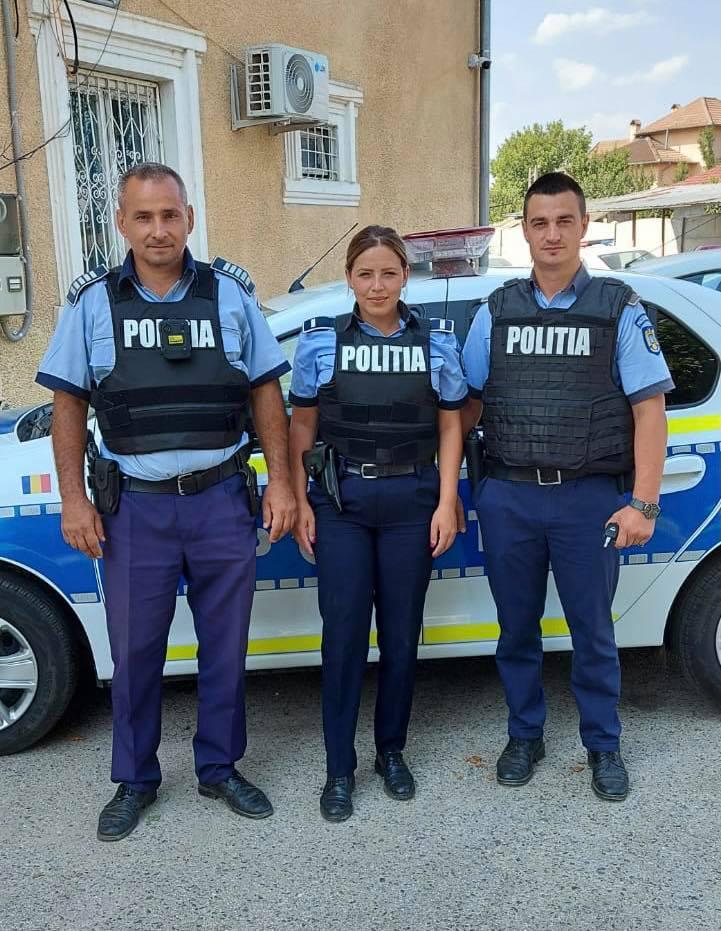 „De la stânga la dreapta, Petre, Roxana și Claudiu, polițiști ai Secției 5 din orașul Strehaia, județul Mehedinți! Dragi colegi, „jos pălăria”!”, a scris Poliţia Română pe Facebook.