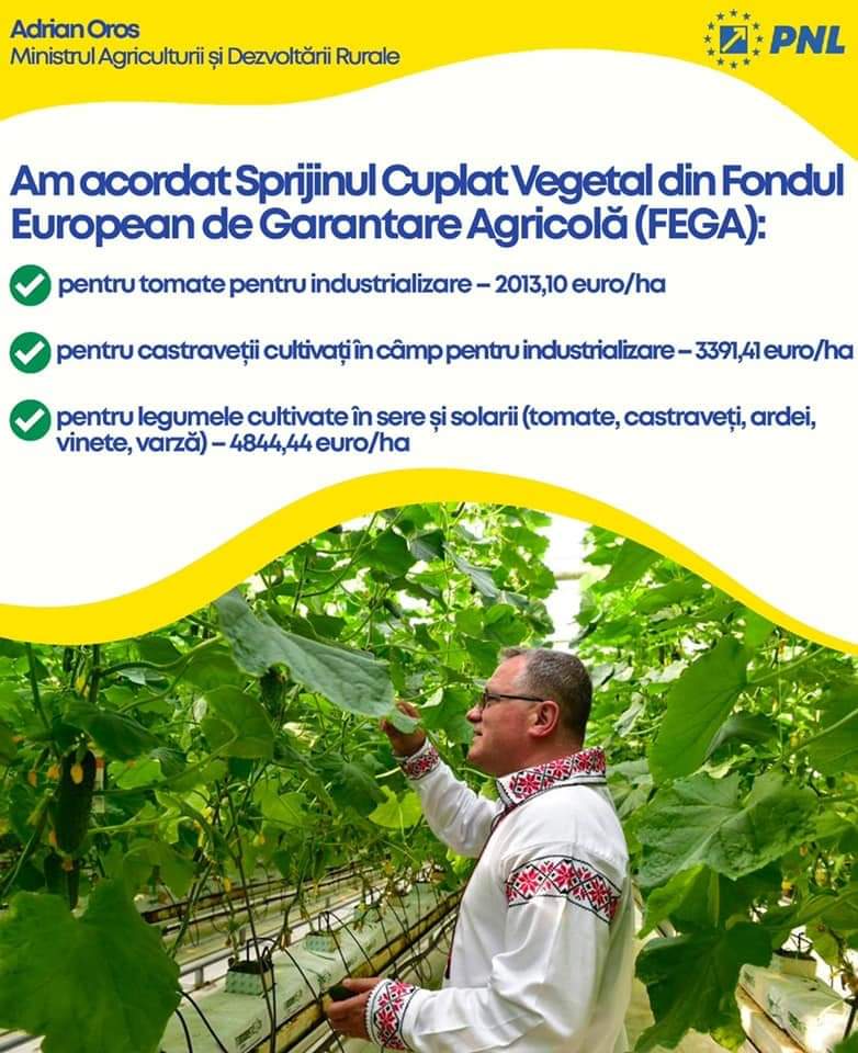 Am acordat Sprijinul Cuplat Vegetal (SCV) din Fondul European de Garantare Agricolă (FEGA):