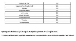 – din zona verde, în urma creșterii incidenței: Bulgaria, Serbia, Albania, Armenia, Slovenia, Belarus, Japonia, Palestina, Filipine, Mauritius, Timorul de Est, Burnei Darussalam, Guyana și Bermuda.