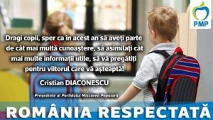 Astăzi, clopoțelul va suna începutul unui nou an școlar. Emoțiile, sentimentele, dar și speranțele vor fi în inimile școlarilor, dascălilor, dar a părinților. Ei toți vor spera ca procesul de învățământ din acest an să decurgă normal, fără tulburări majore, fără întreruperi, care să aducă prejudicii școlarilor. Dragi copii, Sper ca în acest an să … Continuă lectura Cristian Diaconescu , președintele Partidului Mișcarea Populară: Un nou an școlar bogat în cunoștințe și realizări!