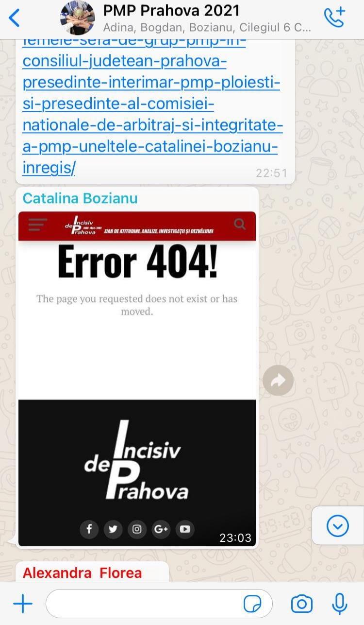 Atacurile au inceput prin atacarea articolului “Limbaj necivilizat, obscen, trivial si vulgar utilizat pentru membrii PMP Prahova (inclusiv pentru seniorii din acest partid) de catre: o femeie (?), sefa de grup PMP in Consiliul Judetean Prahova, Presedinte interimar PMP Ploiesti si Presedinte al Comisiei Naționale de Arbitraj si Integritate a PMP/Uneltele Catalinei Bozianu/ Inregistrari audio”.