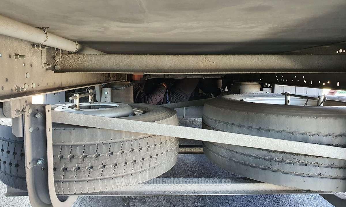 Doi cetăţeni din Turcia şi Tunisia ascunşi în portbagajul unui autoturism, respectiv deasupra rotii de rezerva a unui automarfar.