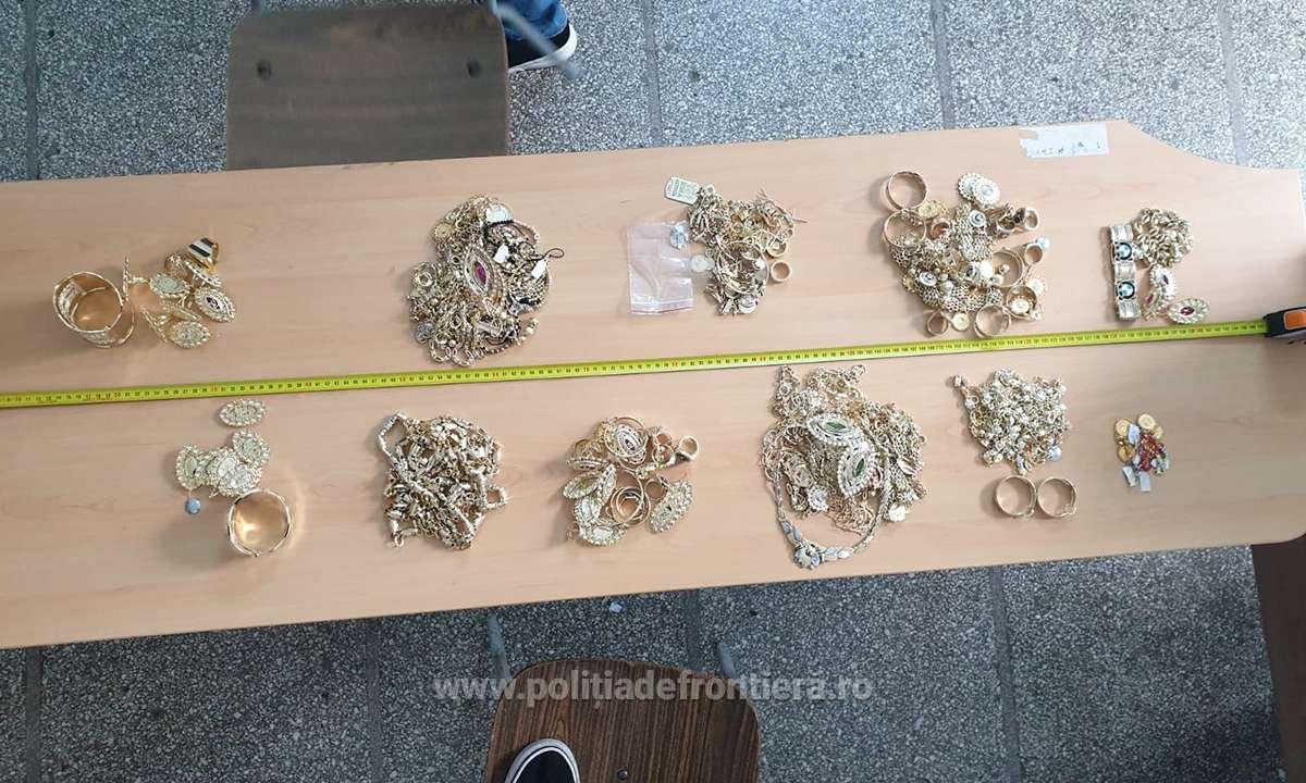 Cu ocazia efectuării controlului asupra autoturismului, s-a stabilit că maşina era condusă de o femeie, în vârstă de 34 de ani, cetăţean român, iar în interiorul vehiculului a fost descoperită o pungă în care se aflau mai multe cutii de carton, ce conţineau bijuterii confecţionate dintr-un metal de culoare galbenă, pentru care persoana în cauză nu a putut prezenta documente justificative.