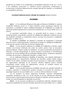 Comitetul Național pentru Situații de Urgență a adoptat joi seară Hotărârea cu numărul 76, care prevede „permiterea participării zilnice, cu prezență fizică la cursuri, a tuturor antepreșcolarilor, preșcolarilor și elevilor în unitățile de învățământ, indiferent de rata de incidență cumulată cu respectarea tuturor normelor de prevenire a răspândirii infecțiilor cu SARS-CoV-2”. Măsura a fost anunțată încă de miercuri de ministrul Cîmpeanu.