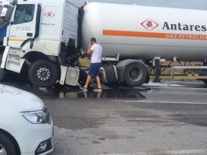 Azi, in jurul orelor 14.40 s-au ciocnit doua cisterne pline in Ploiești, langa Industrial Parc si exista pericolul de explozie. Accidentul s-a produs pe DN 72 intre o betoniera si o cisterna plina cu GPL. (Sava N.).