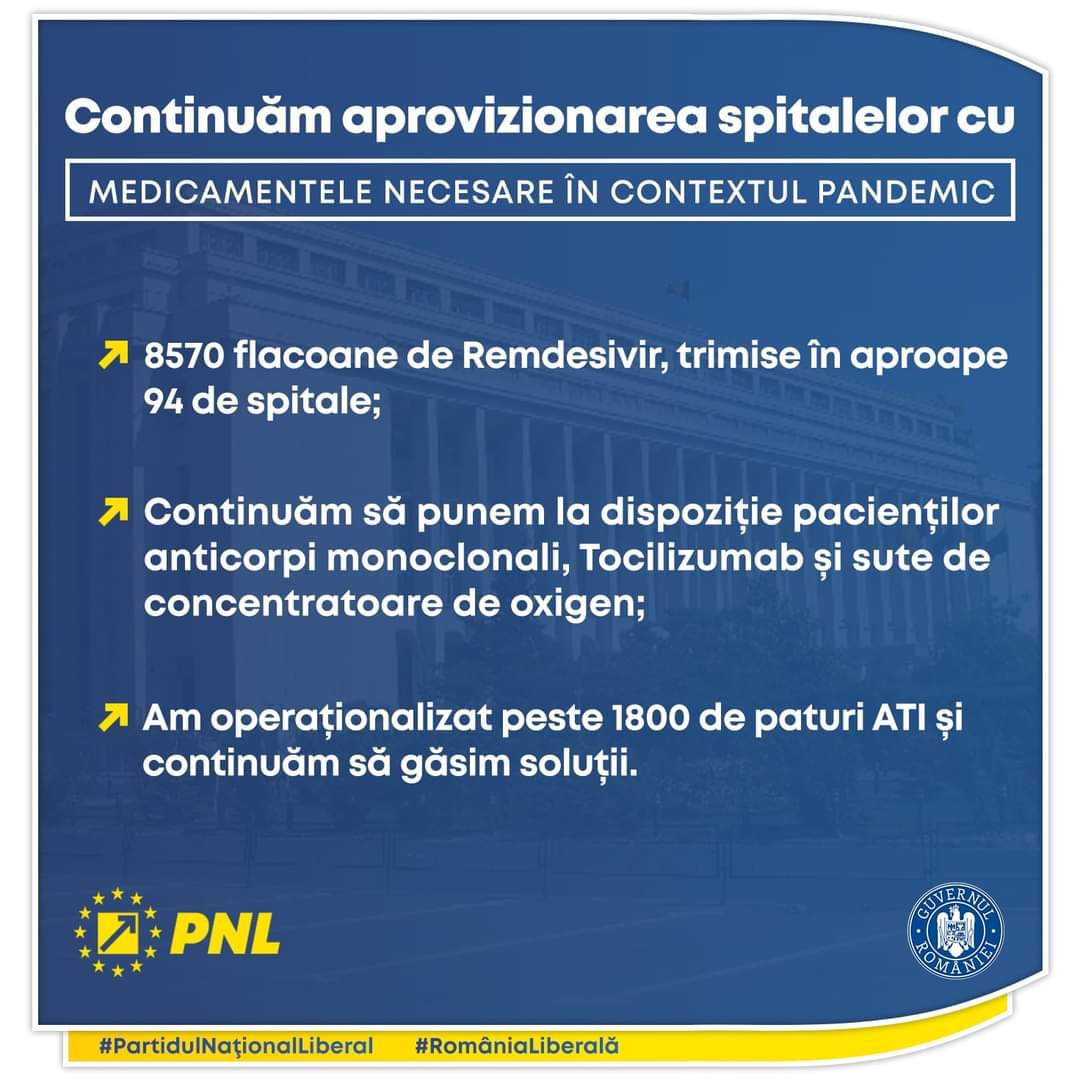 Guvernul a demarat procedurile pentru încheierea contractului de furnizare a 10.000 de tratamente anticorpi monoclonali și încheierea unui nou contract pentru furnizarea cantității de 139.200 flacoane de Remdesivir. 8570 flacoane Remdesivir au fost trimise în aproape 94 de spitale.