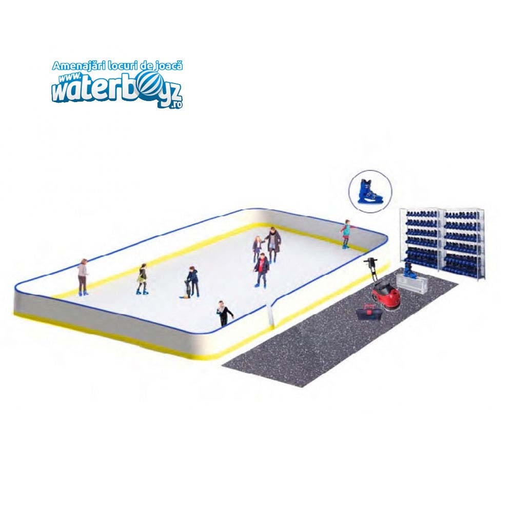 Spre deosebire de patinoarul clasic, patinoarul sintetic se intretine mult mai usor deoarece nu are nevoie de o sursa de curent continua pentru a functiona si nici de apa. Vei gasi in pachetele de amenajare a patinoarului elementele necesare: patinele, gardul imprejmuitor, suprafete de glisare, unelte si solutii pentru intretinere si curatare, rasteluri pentru patine.