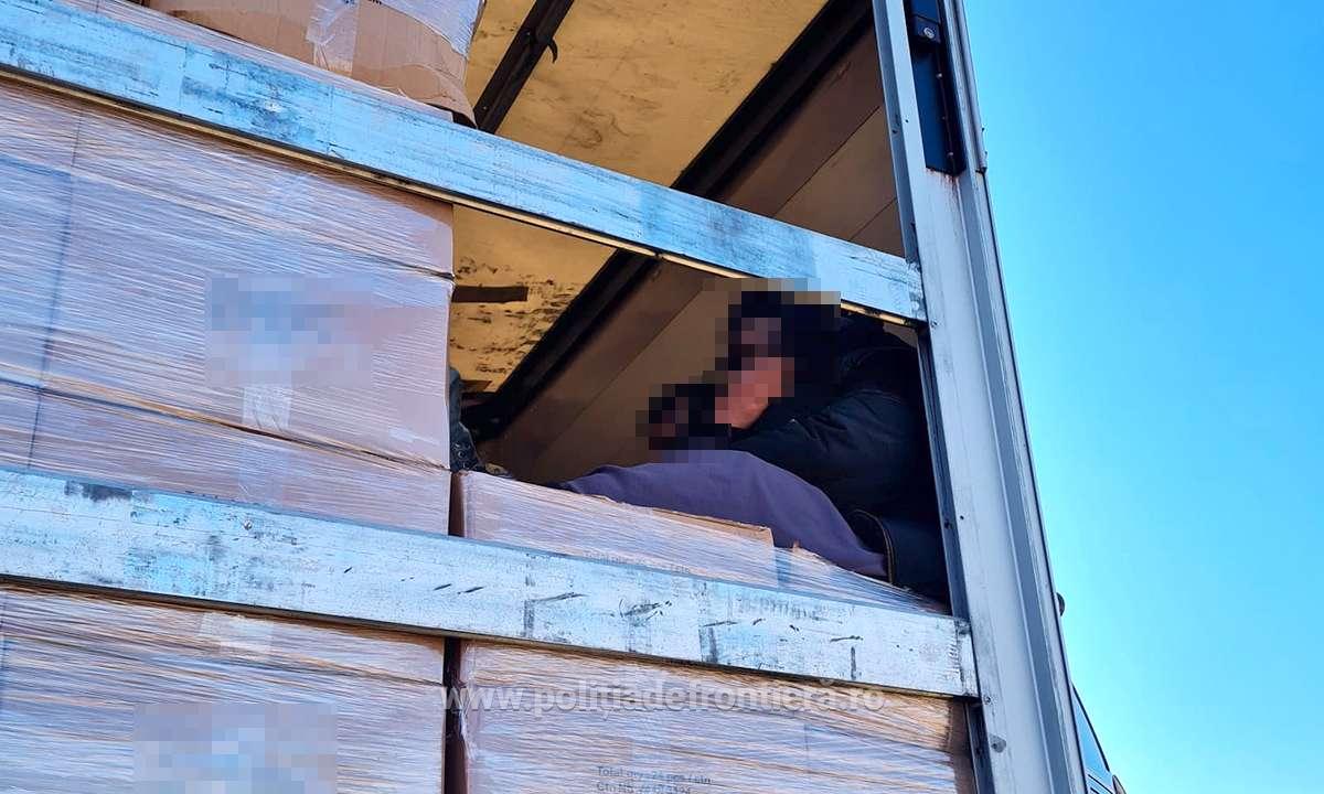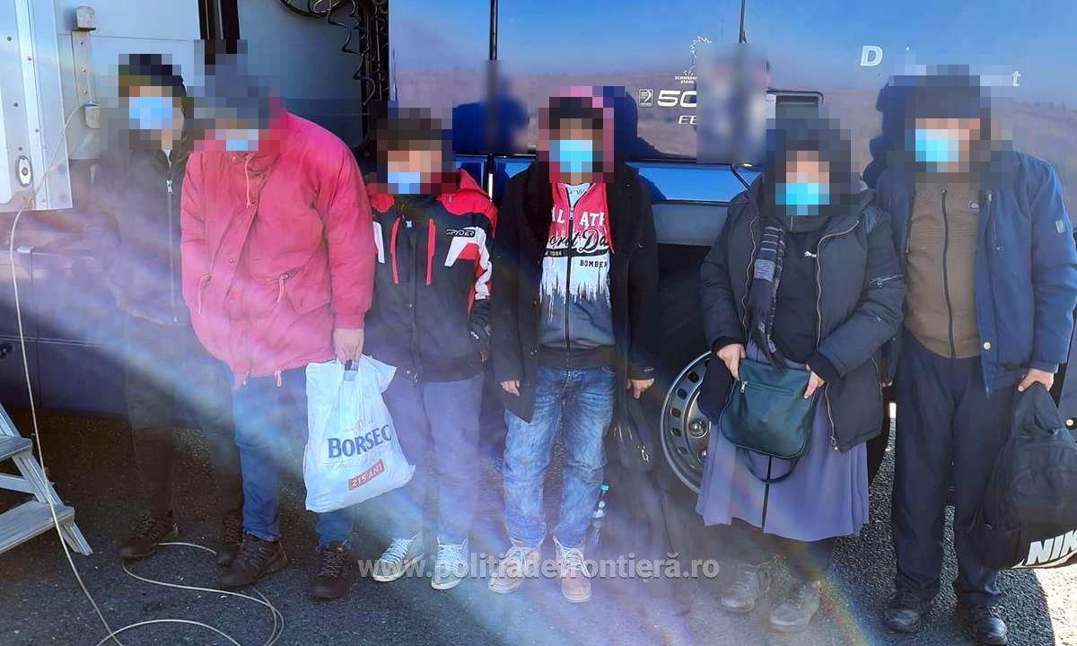 În urma efectuării controlului amănunţit al mijlocului de transport, au fost descoperiţi, ascunşi în compartimentul pentru marfă, șase cetăţeni străini.