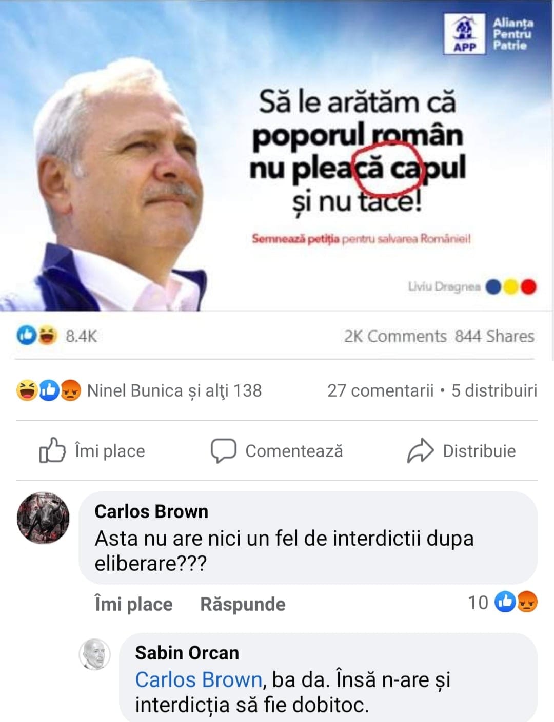 Sloganul partidului susținut de proaspăt liberatul Daddy e „poporul român nu pleaCĂ CApul”.