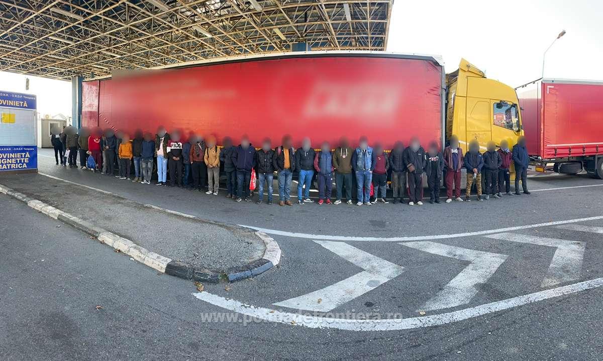 Patruzeci şi patru de cetăţeni din India, Eritreea, Pakistan si Afganistan, care intenţionau să treacă ilegal frontiera în Ungaria, au fost depistaţi de poliţiştii de frontieră din Punctului de Trecere a Frontierei Nădlac II, ascunşi în trei automarfare încărcate cu diverse marfuri.