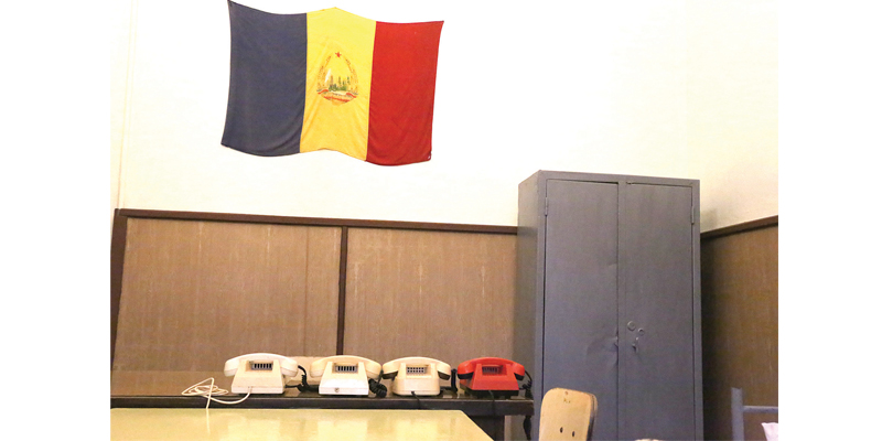 Anul 1989 – Sala unde cuplul Ceauşescu a fost judecat (atunci și acum) şi unde s-a dat sentinţa de condamnare la moarte. Controlul medical fusese făcut în biroul comandantului. Din completul de judecată au făcut parte şi aşa-numiţii asesori populari, care au şi semnat această sentinţă, alături de judecător. În comunism, aceștia erau desemnați din rândul cetățenilor care aveau principii conforme cu linia dictată de sistem.