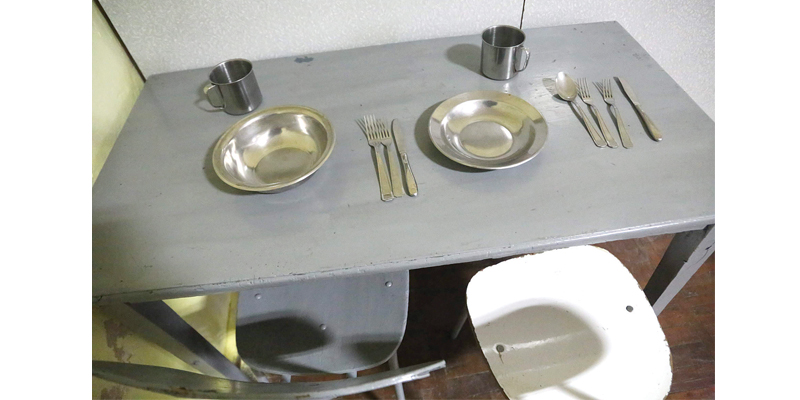 Masa şi tacâmurile din care au mâncat cei doi. Iniţial, soţii Ceauşescu au refuzat mâncarea,